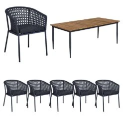 Solpuri Pia Gartenmöbel-Set 7-tlg. Tisch 200x100cm Anthrazit/Natur