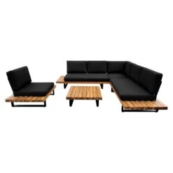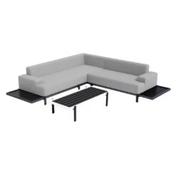 OUTLIV. Albufeira Ecklounge 3-teilig Aluminium/Akazie/Polster Schwarz/Teaklook/Royal Stone Grey