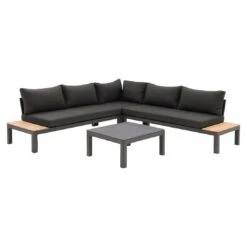 OUTLIV. Barbados Ecklounge Aluminium/Akazie Inklusive Kissen Anthrazit/Teak Look/Royal Stone Grey