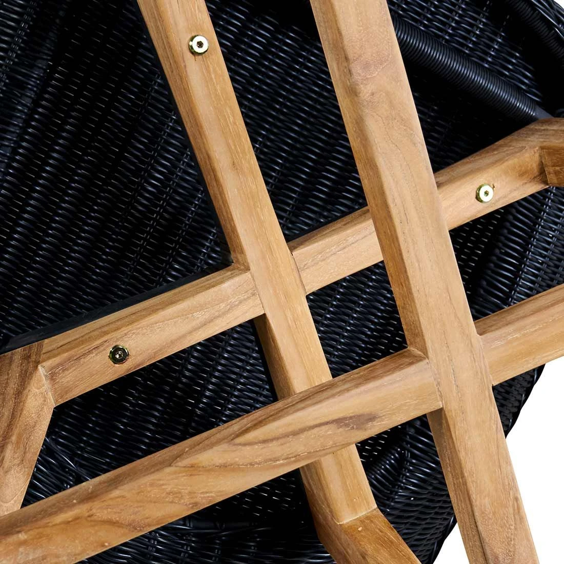 Das Gestell wird aus Teakholz gefertigt und bringt ein natürliches Flair auf Ihre Terrasse. Für eine attraktive Optik ist das Gestell im Farbton Natur gehalten. Die Sitzfläche des Gartenstuhls besteht aus exzellentem Polyrattan. Ein Material, das sich durch seine lange Haltbarkeit auszeichnet. Die Sitzfläche hat eine schöne Farbgebung in Schwarz.