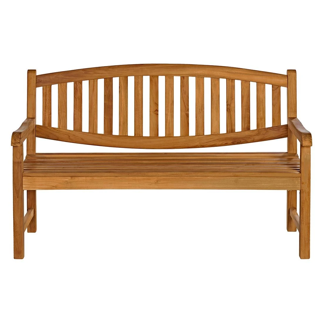 Die Gartenbank besteht vollständig aus Teakholz. Dies erzeugt nicht nur ein geschmackvolles, sondern auch einheitliches Bild des attraktiven Möbels. Für ein perfekt stimmiges Gesamtbild sorgt die einheitliche Farbgebung in stilvollem Natur.