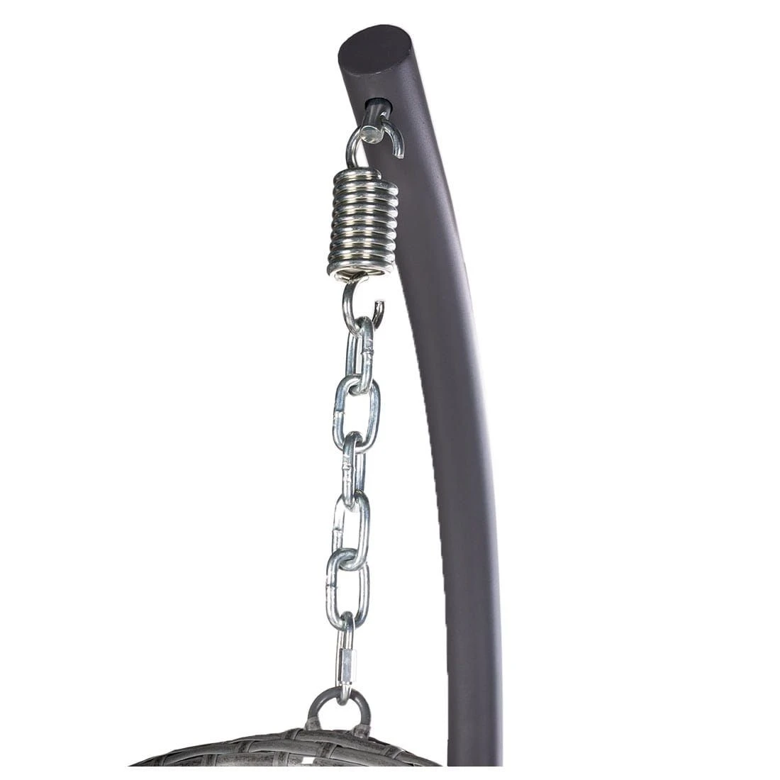 Ein hochwertiges Polyrattan-Geflecht umgibt das robuste Gestell und verleiht dem Hängesessel damit einen ganz besonderen Look.