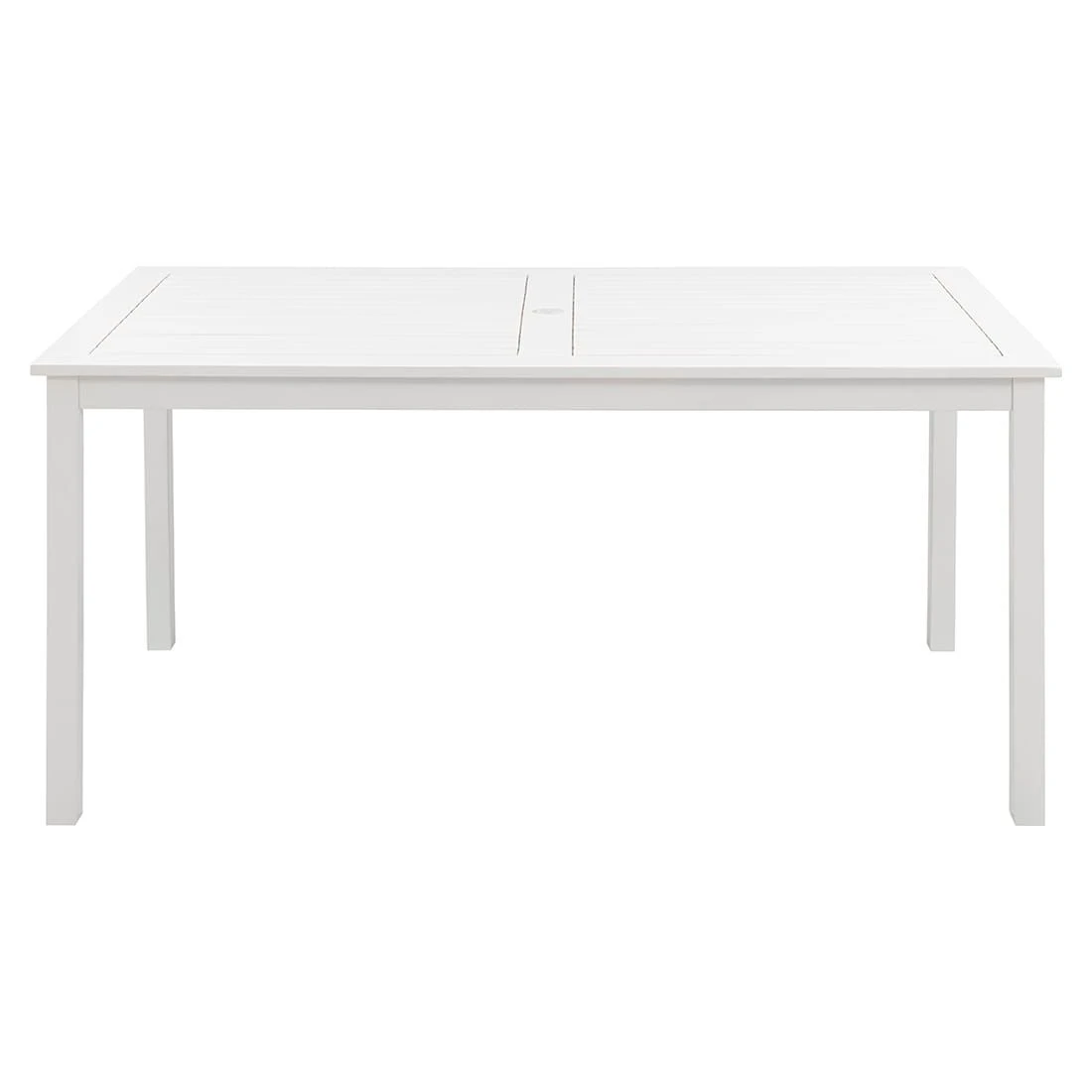 Als klassische Design-Komponente fungiert das geradlinige Vierfußgestell. Der Gartentisch Landhaus ist Ton in Ton gehalten: Sowohl das Gestell als auch die Tischplatte sind aus Akazienholz gefertigt. Farblich ist die Tischplatte in einem schönen Weiß gehalten. Der Gartentisch ist klassisch rechteckig gestaltet.