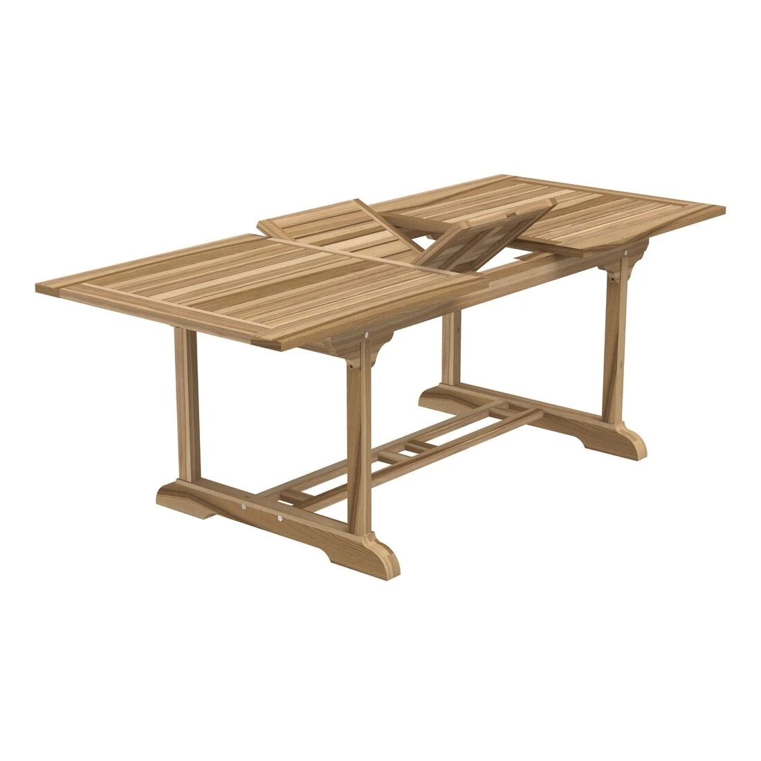 Das klassische Vierfuß-Gestell garantiert Ihnen maximale Beinfreiheit. Der Ausziehtisch Ontario ist Ton in Ton gehalten: Sowohl das Gestell als auch die Tischplatte sind aus Teakholz gefertigt. Farblich ist die Tischplatte in einem schönen Teak gehalten. Mit der rechteckigen Form lässt sich der Ausziehtisch platzsparend in Ecken oder an Häuserwänden aufstellen.