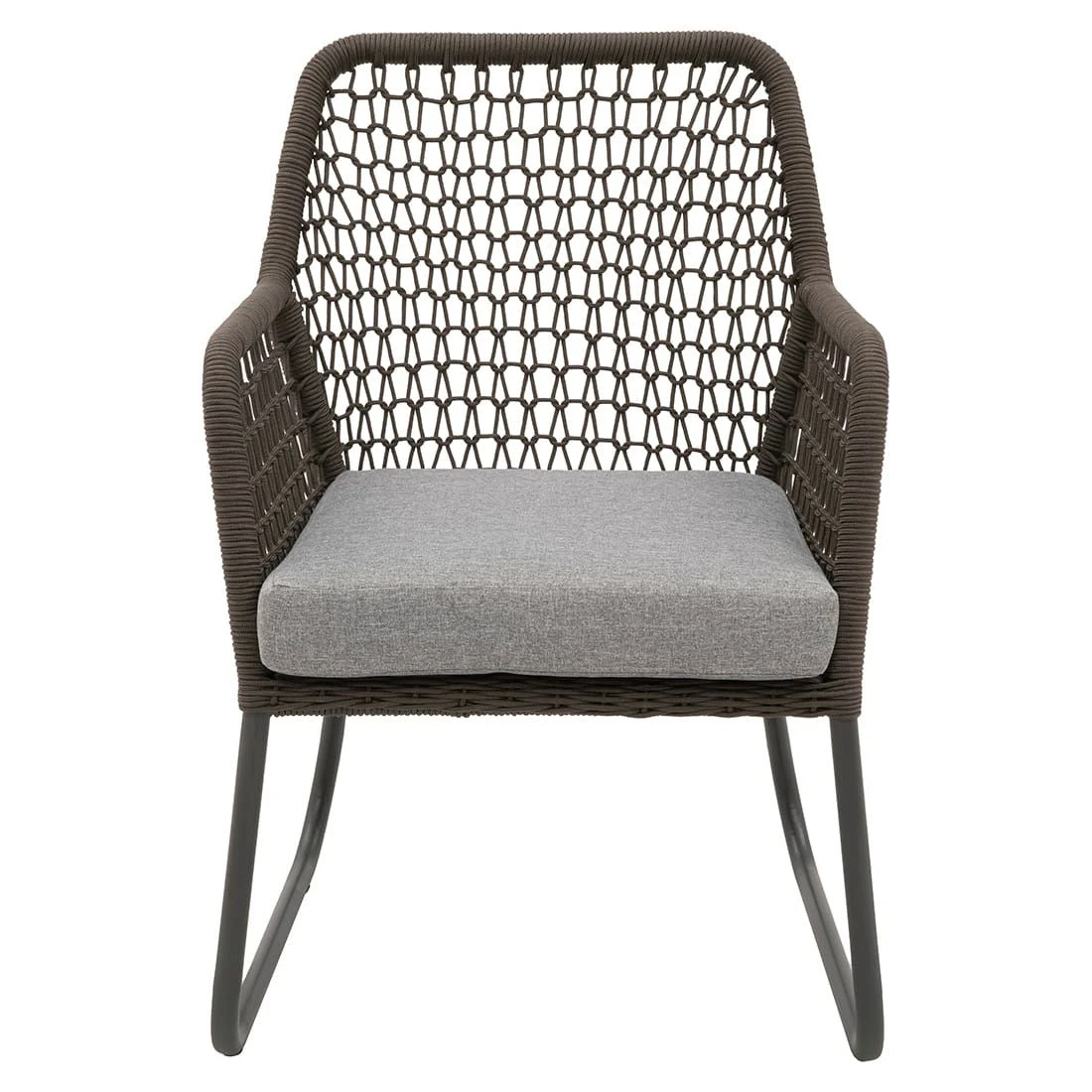 Für die Herstellung des Gestells wird hochwertiges und wetterfestes Aluminium verwendet. Das Gestell ist mit Rope umflochten und bringt somit modernen Flair auf Ihre Terrasse. Die Sitzfläche des Gartensessels ist mit langlebigem Stoff bespannt. Für ein perfekt stimmiges Gesamtbild sorgt die einheitliche Farbgebung in stilvollem Dunkelgrau.