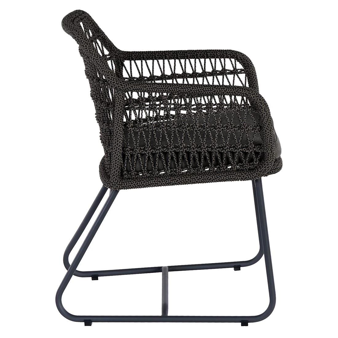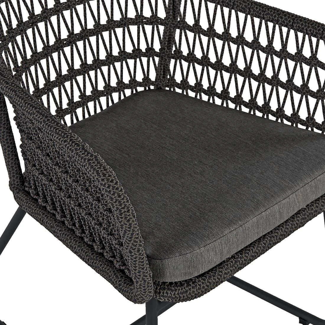 Der Korpus und die Sitzfläche bestehen aus Rope. Das Gestell besteht aus pflegeleichtem und wetterfestem Aluminium. Die Bezüge sind aus dem Marken-Outdoorstoff Olefin gefertigt. Das Material verbindet eine angenehme Stoffoberfläche mit hoher Witterungsbeständigkeit. Denn sowohl Sonne als auch Regen können dem robusten Outdoor-Stoff kaum etwas anhaben. Für ein perfekt stimmiges Gesamtbild sorgt die einheitliche Farbgebung in stilvollem Charcoal.